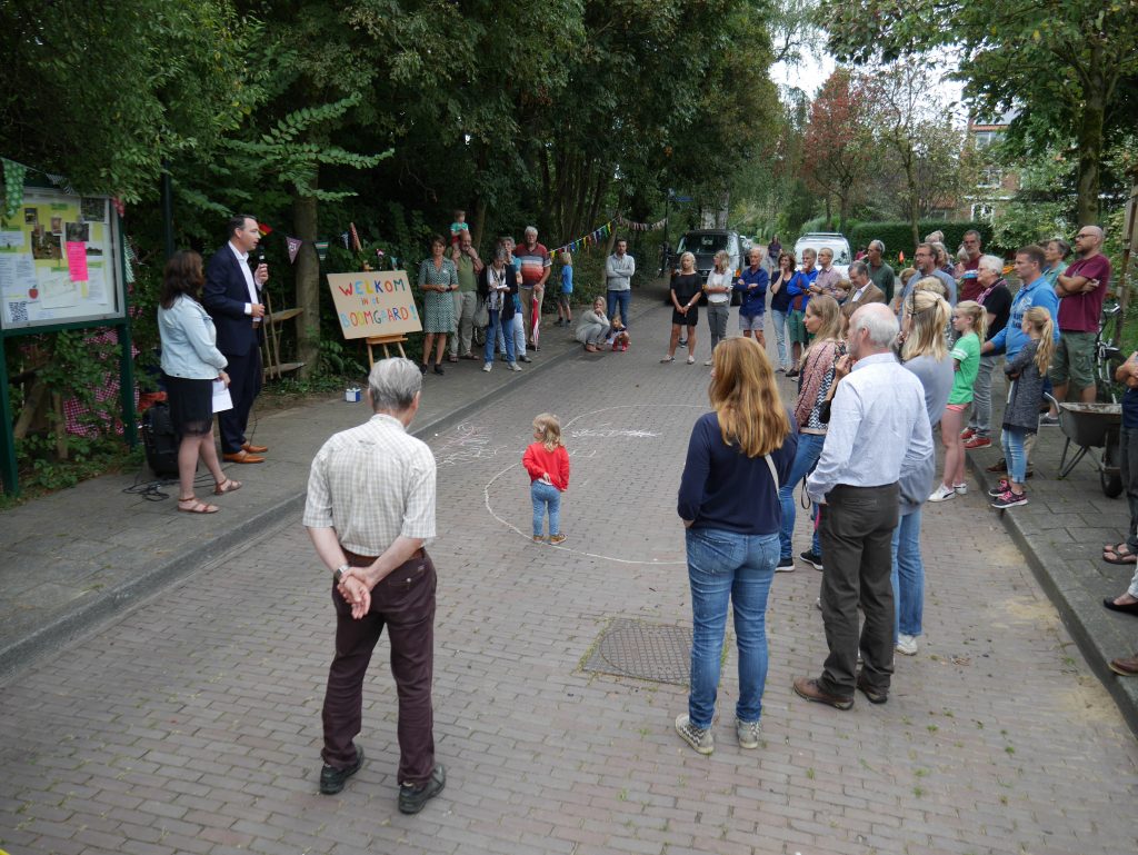 Op 17 september 2016 hadden we een prachtig openingsfeestje waarbij de naam, Rosande Gaerd, onthuld werd door Jasper Verstand, wethouder burgerinitiatieven, met hulp van Silvijn en Vincent. Twee 5 jarigen, die elkaar leerden kennen in de boomgaard en nog steeds vrienden zijn. Tekenend voor wat de boomgaard veroorzaakt in de buurt, groene ontmoetingsplaats voor groot en klein, met aandacht voor flora en fauna.